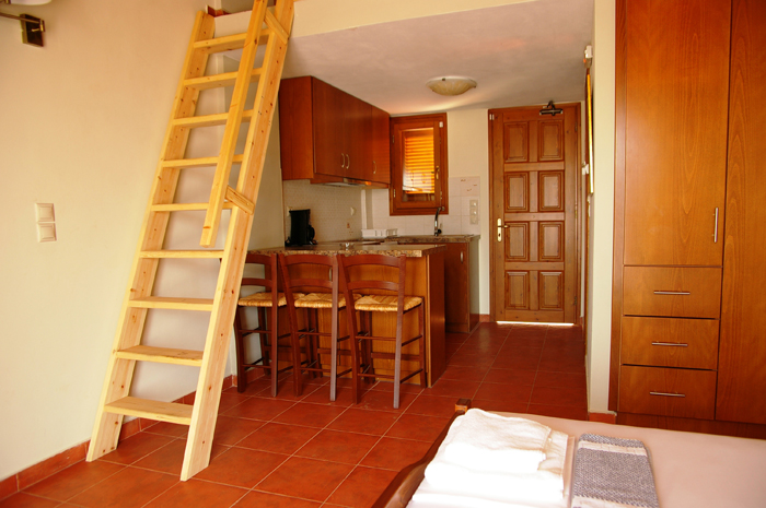 Die Ferienwohnungsanlage XENIOS besteht aus 5 Studios mit jeweils 28 m² und 2 räumigen Lofts von jeweils 40 m². Im Hauptraum der Ferienwohnungen sind die Studios und Lofts mit Doppelbett, Satelliten-Fernseher, Klimaanlage und allen sonstigen Komforts ausgestattet. Jede Ferienwohnung hat ihren eigenen Balkon mit einzigartigem Blick zum Meer und zu den Bergen.